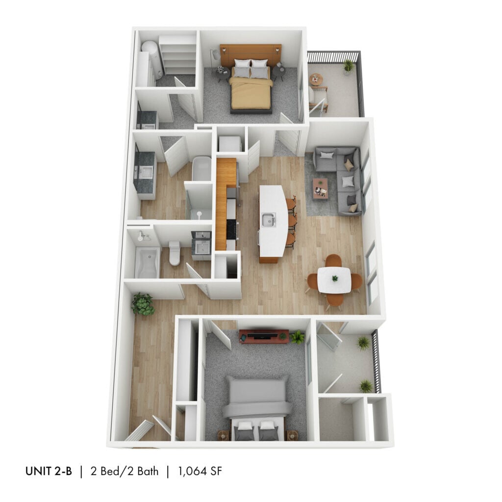 2 Beds, 2 Baths, 1064 sq ftModel Gallery