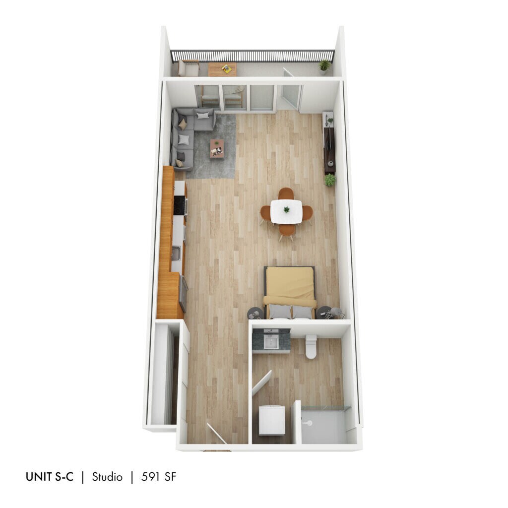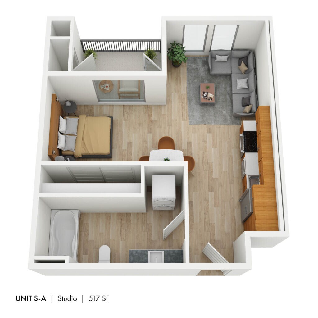 Studio A - Floorplan 1 Apartment Unit: 233-402Apartment Model: Studio A$1,645Studio, 1 Bath, 517 sq ftAvailable NowStudio C
