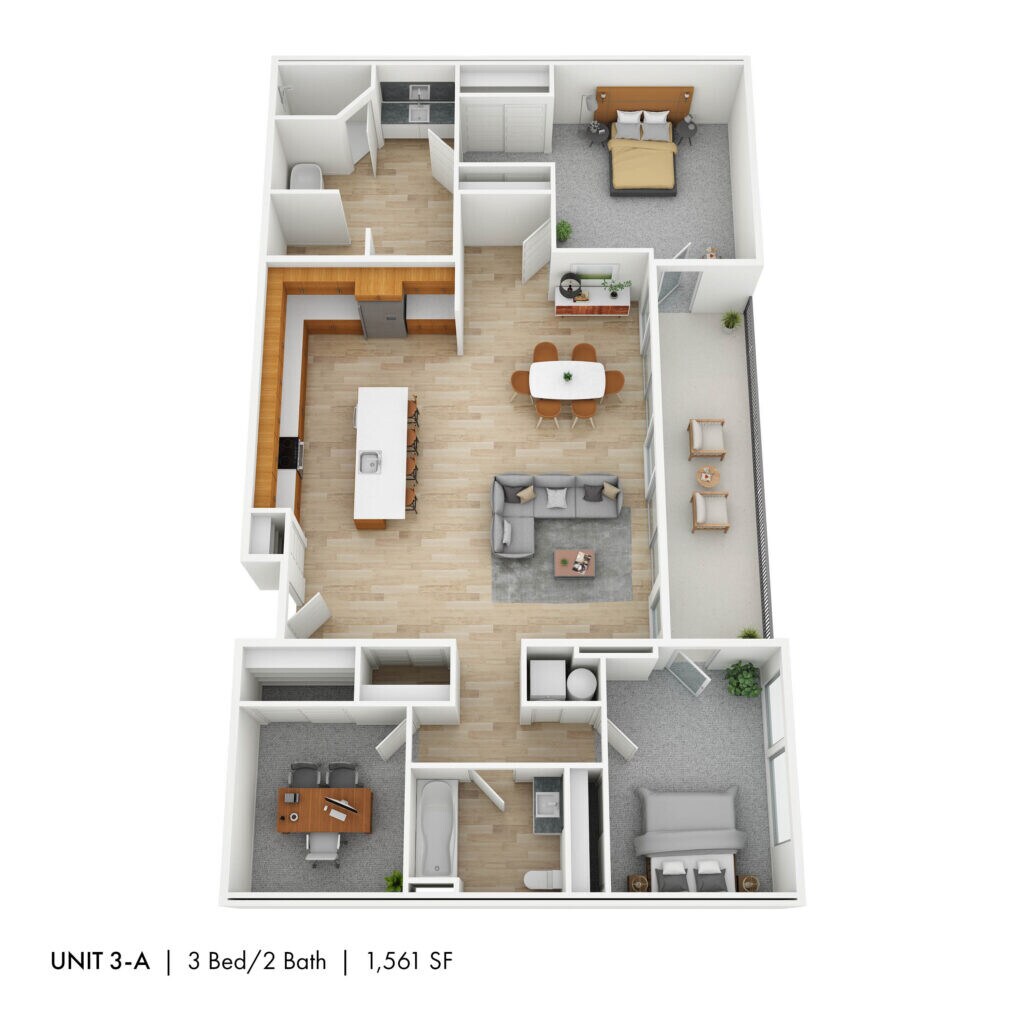 Apartment Model: Three BedroomCall For Rates3 Bedroom, 3 Bath, 1561 sq ftUnavailable![]()