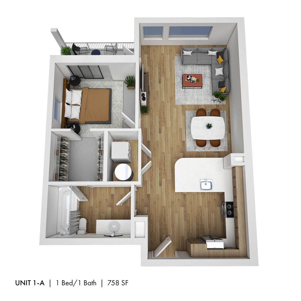1 Bed, 1 Bath, 758 sq ftModel Gallery