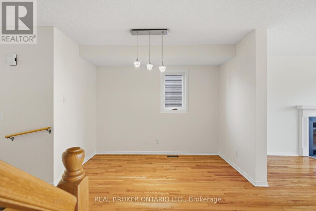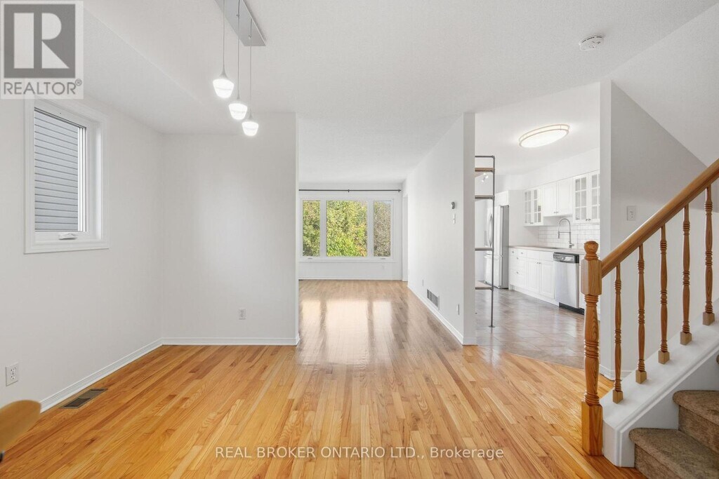 Welcome to this bright and inviting 3-bed,2-bath end-unit townhome in the Morgan's Grant / South March neighbourhood of Kanata North. Backing onto Shirleys Brook forest and creek,this home offers rare privacy with no rear neighbours and a fenced yard. Inside,a sunken foyer with double closet and powder room leads to a spacious open living/dining area with hardwood floors. The bright kitchen features white shaker cabinetry,butcher block counters,stainless steel appliances,and direct access to an elevated deck overlooking nature. Upstairs are 3 comfortable bedrooms,including a large primary with walk-in closet. The finished walkout lower level adds a bright rec room,laundry,and storage. You'll appreciate parking for up to 3 vehicles (garage + driveway) and a walkable lifestyle close to the Kanata North Tech Park,transit,schools,parks,trails,and all amenities. A perfect next step for those seeking space,privacy,and a connection to nature. (id:52069) ID#: 1966098