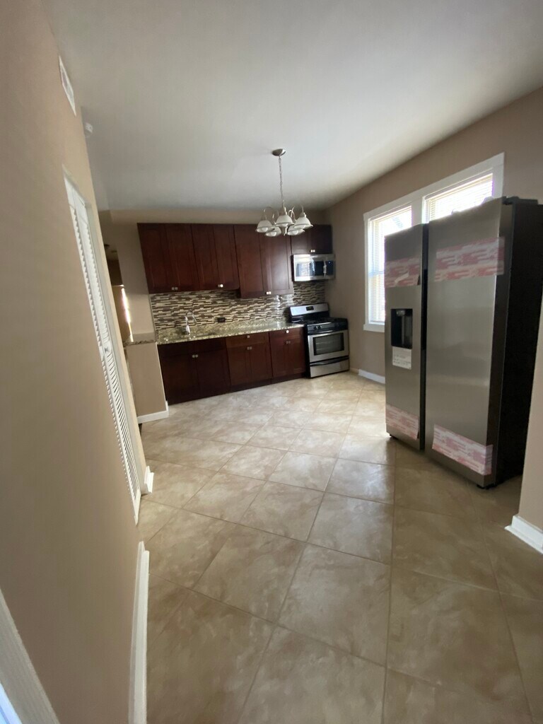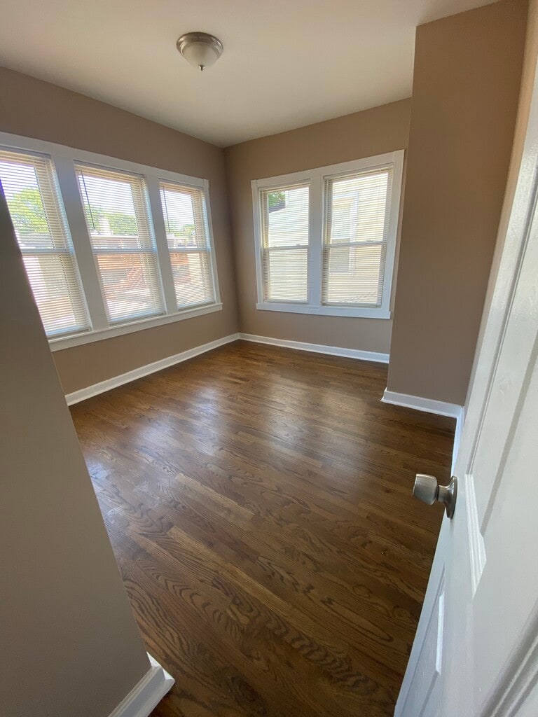East Garfeild Park beautiful 4 bedrooms 1 full bathrooms gated with 24 hr security camaras. Spaccious dining and living room with hardwood floors. 2 large coat closets in front foyer. State of the art kitchen with stainless steel appliances, porcelain floors and quartz countertops. In unit washer and dryer hook up only and central A/C. Back deck with yard and steel security doors. This 1350 Sq Ft 21 windows hidden gem dazzles in the morning sunlight