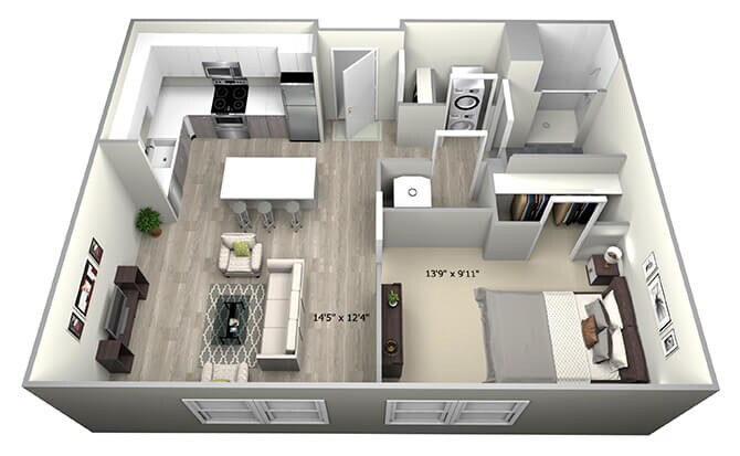 1 Bed, 1 Bath, 885 sq ftAvailable NowLargest 1 BedroomThis is the largest 1 Bedroom at this PropertyModel Gallery