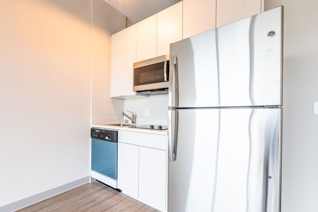 735 West offers open floor plans available in Studio and 1 bedroom layouts. 735 West combines modern finishes like stainless steel appliances and plank-wood flooring, with scenic views of downtown Milwaukee to make your new home the ideal combination of comfort and style. With access to MKE Public Market, Fiserv Forum and bustling downtown, our residents enjoy an endless array of convenience, dining, and entertainment options. 735 West’s downtown Milwaukee location is ideal for those looking to explore the city’s vibrancy while enjoying at home amenities like the business center and fitness center. All residents also enjoy convenient building features such as included high-speed internet, the Amazon HUB and keyless secure entry. 735 West is also pet friendly! Transportation – 8th&9th Street Bus Stop – BLU, 14, 137. 3 blocks North/West of Intermodal Station (MKE Hop). Accessible via I-43.