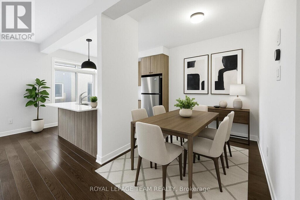 Be the first to live in this elegant Mattamy Odyssey townhome in the highly desirable Northwoods community of Kanata North. This brand new residence offers approximately 1,915 sq ft of beautifully designed living space plus a finished basement,combining modern style with everyday comfort. The main floor welcomes you with rich hardwood flooring and a bright open concept layout ideal for both entertaining and family living. The chef inspired kitchen features quartz countertops,a stylish backsplash,ceiling height white oak style cabinetry,a large island with seating,and brand new stainless steel appliances including a high capacity hood fan perfect for cooking enthusiasts. The great room overlooks the backyard and creates a warm,inviting space to gather and unwind. Upstairs,the spacious primary retreat offers a walk in closet and a private ensuite with an extended vanity and additional storage. Two additional bedrooms,a full bathroom,and convenient second floor laundry complete the level. The finished lower level provides a versatile recreation space ideal for a media room,home office,or gym. Perfectly positioned in the heart of Kanata North's thriving high tech corridor,this home is surrounded by top rated schools,parks,and scenic trails while being minutes to major amenities including shopping,recreation centres,Canadian Tire Centre,Bell Sensplex,Landmark Cinemas,and the Kanata Nordic Ski Club. Additional highlights include central air conditioning,a welcoming foyer,mudroom with garage access,1 car garage with driveway parking,and a spacious backyard. Window blinds will be installed shortly for the comfort of the new tenants. An exceptional opportunity to enjoy refined living in one of Kanata's most sought after new communities,close to technology employers,nature,and everyday conveniences. 3 pics are virtually staged. (id:52069) ID#: 1983353