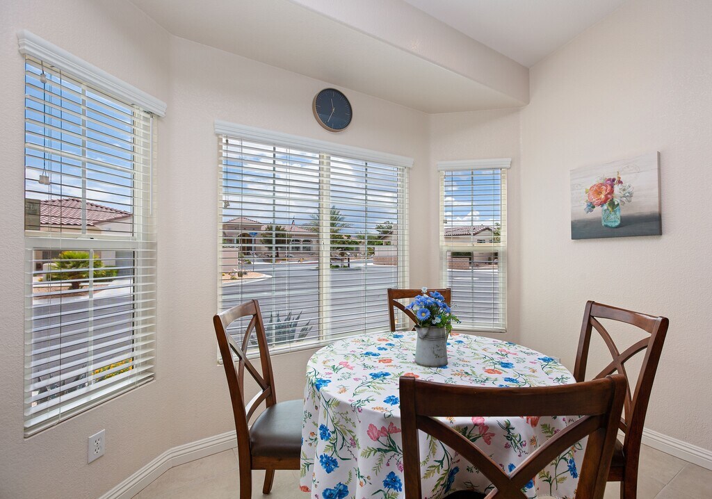 Located In The Beautiful Desert Vista Village 55+ Gated Community. This Bright & Spacious Home Is In Turn-Key Condition And Located On A Premiere Corner Interior Lot With Mountain Views. It Is Conveniently Located Just A Few Steps To The Clubhouse. Newer Exterior Paint & Trim. This Property Is Beautifully Landscaped With Inviting Desert Plants and Flowers. Flooring Is Ceramic Tile With A Special Glass Decorative Insert Thru-Out. The Sunny Kitchen Boasts Corian Counter Tops, Stainless Steel Appliances And A Lovely Bay Style Window. Plenty Of Cabinet Space For Storage And A Cozy Breakfast Nook. The Large, Open Living Room Has A Gas Fireplace, Cathedral Ceilings And A Lovely Palladian Style Window. The Primary Bedroom Has A Walk-In Closet and En-Suite Bathroom With Dual Sinks. Backyard Has A Shady Covered Patio And Is Completely Fenced For Privacy. Central Heat & A/C. Water Heater & LED Lighting And New Garage Door Opener. Clubhouse Has Abundance Of Amenities. It's Just 30 Minutes To Palm Springs, Joshua Tree Nat. Park, The 29 Palms Marine Base & Tortoise Rock Casino. Close to Shopping, Restaurants, Medical. So Much To Appreciate.