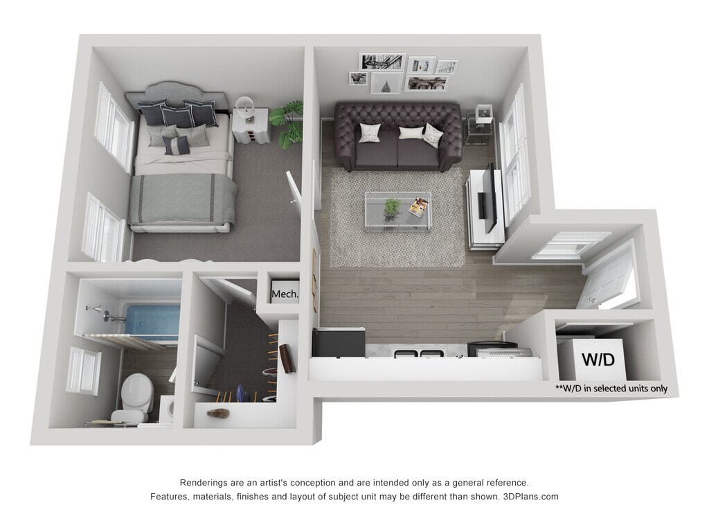 Studio Upgrade - Call For Availability - Image 1 Apartment Unit: UpgradedStudioApartment Model: Studio Upgrade - Call For Availability$1,100Studio, 1 Bath, 378 sq ftAvailable Now1 Bedroom
