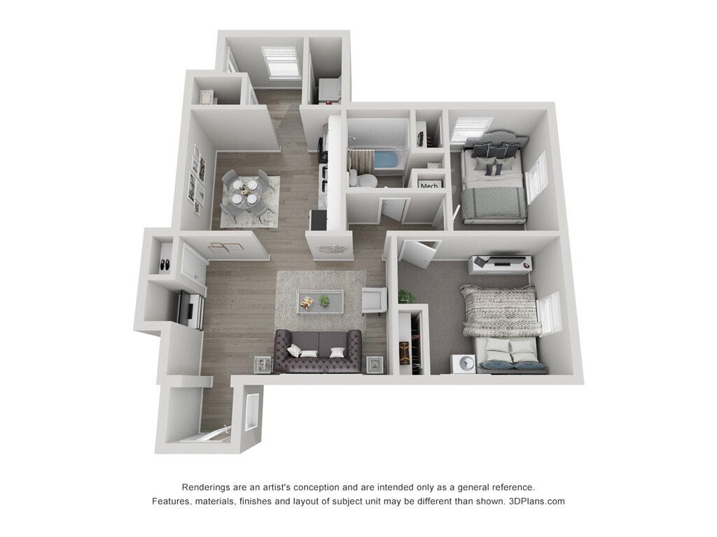 2 Beds, 2 Baths, 817 sq ftAvailable NowModel Gallery
