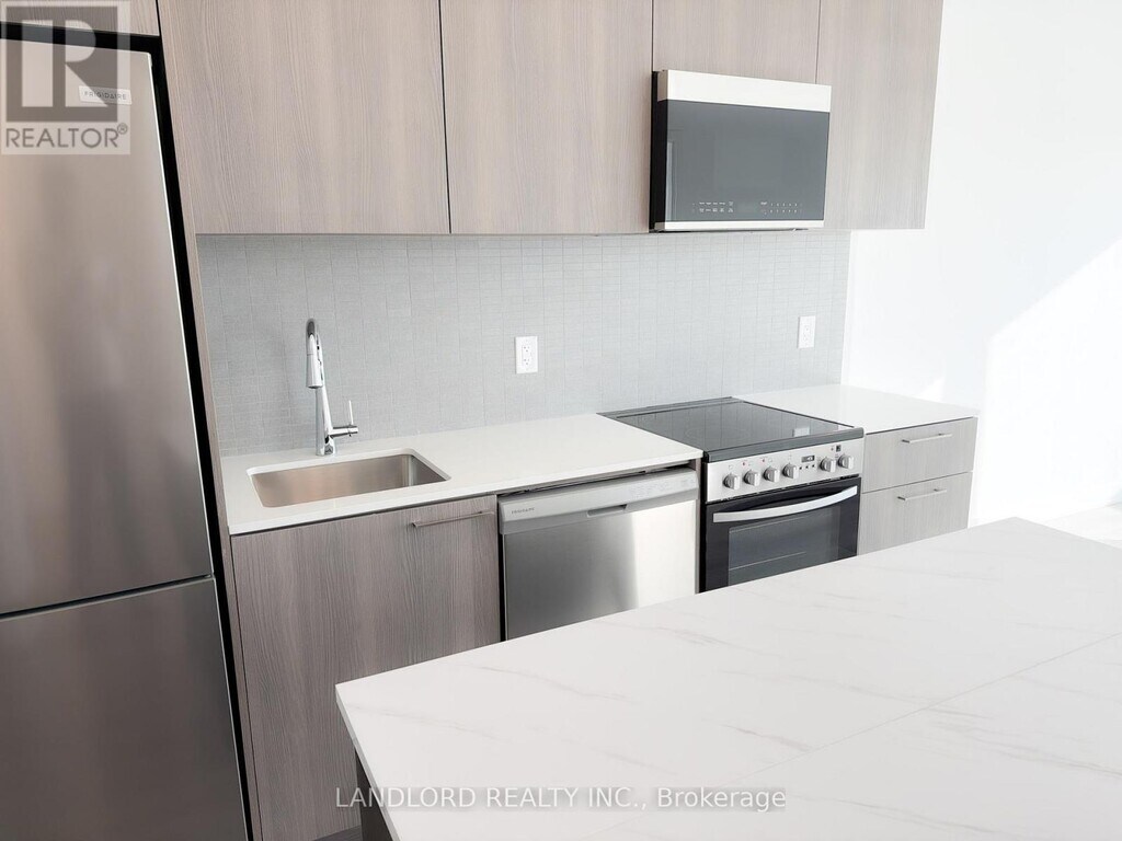 Vacant move in ready professionally managed unfurnished two-bedroom two-bathroom suite! Take in sweeping southern views all the way out to the lake from the living room,primary bedroom,and the balcony. Parking,locker,kitchen island,and window coverings included. Refer to listing images and attached floor plan for layout. Features and finishes include: stone countertops and backsplash,built in stainless steel kitchen appliances,durable vinyl flooring,tiles bathroom floor and tub/shower walls,stacked front loading laundry machines,balcony off the living room,9' ceilings throughout and more! -- Building Amenities: refer to listing images. -- Appliances: electric range,range microwave,fridge,dishwasher,washer,dryer. (id:52069) ID#: 1894198