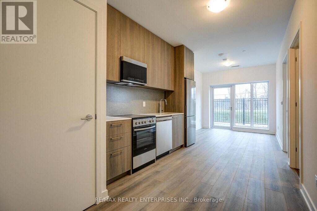 Beautiful brand-new 1 + Den suite available for rent at The Narrative Condos. This ground-floor,open-concept unit offers 9-foot smooth ceilings,sleek modern finishes,and a walk-out to a private terrace. The contemporary kitchen features quartz countertops,stainless steel appliances,and a stylish mosaic backsplash. Stackable front-loading washer and dryer included in-suite,along with window coverings. Residents enjoy an impressive selection of amenities,including a co-working space with multiple workstations,a fully equipped wellness centre with weight,cardio,and strength equipment,a dedicated yoga studio,kids' play studio,and an elegant party room with a full-service kitchen,island dining,and lounge area. Additional amenities include a games room,outdoor terrace with BBQs,and visitors parking. (id:52069) ID#: 2146495
