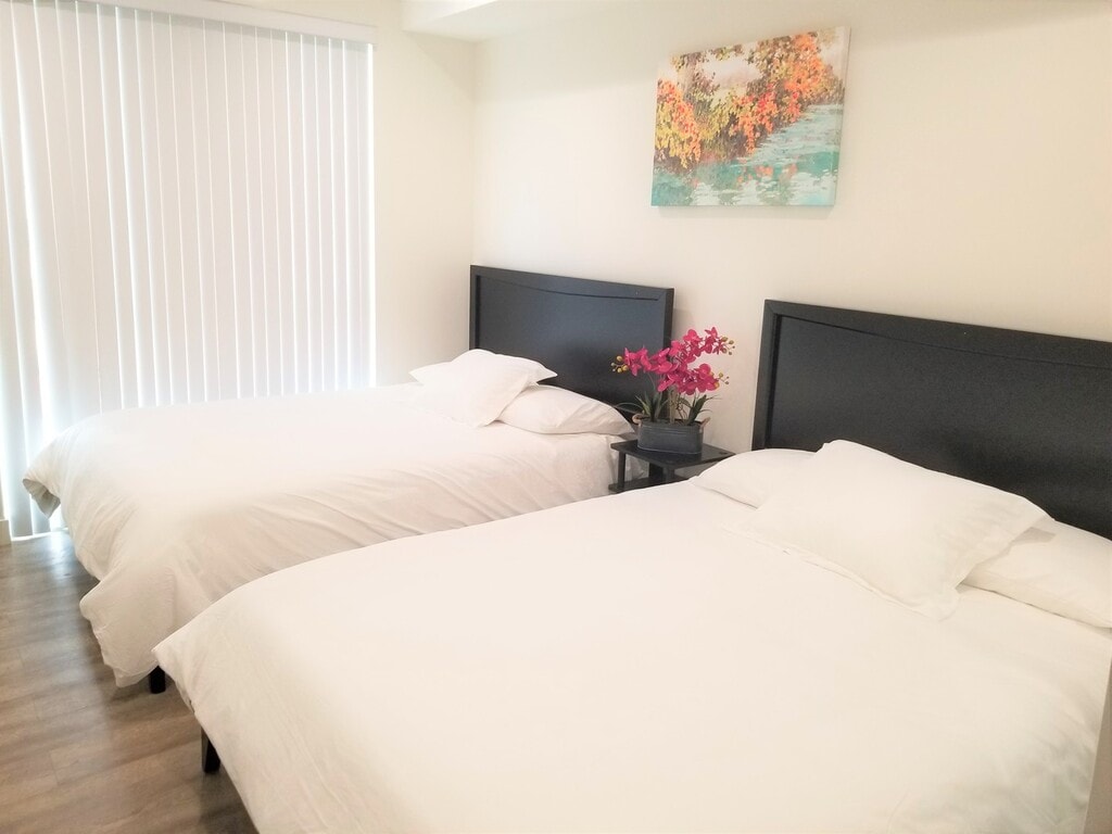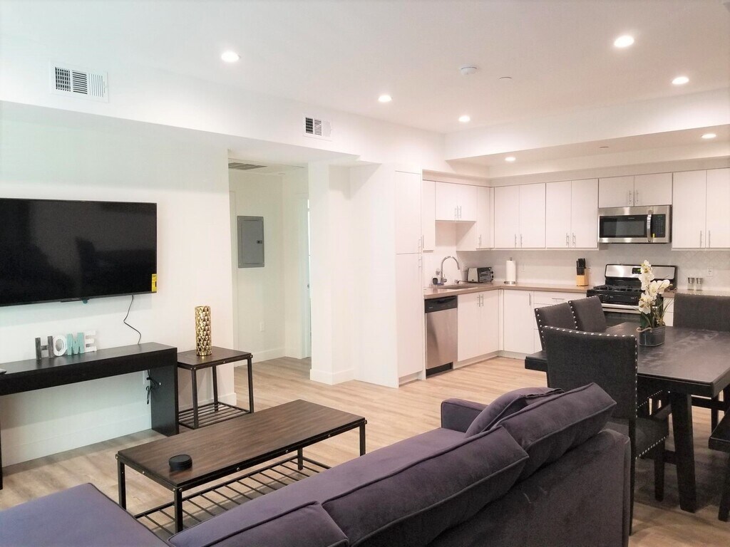 NEW CONSTRUCTION Unit is available unfurnished or furnished for an additional fee We have One Bedroom and Two Bedroom Units available NEWLY built apartment building. Entertain your guests on our beautiful rooftop patio with stunning views of the city. This is a large 2 bedrooms + 2 bathroom unit. We have front and back units with beautiful views. The bedrooms are located across from each other which is perfect for privacy and roommate situations. WALK-IN CLOSETS LARGE PRIVATE BALCONY The unit comes with laminated wooden floors, a spacious private balcony, and a central HVAC system. In the newly placed kitchen, we feature new quartz countertops that are paired with custom cabinets that provide ample storage space. The kitchen features stainless steel appliances, including a fridge, stove, microwave, and dishwasher. IN-UNIT WASHER & DRYER This building has cameras all around the structure as an added measure for tenants. Intercom access. Tenants will also have exclusive access to the gated parking garage. The building is 5 minutes away from Downtown LA. Very close to the entertainment complex known as L.A Live which includes a Regal Cinemas, restaurants such as Wolfgang Puck Bar & Grill, Lawry's Carvery and Yardhouse. Very close to the shopping center on Figueroa & 7th which includes Target, H&M, Zara, a Gold's Gym, etc. Also, very near to the Staples Center and the Convention Center.