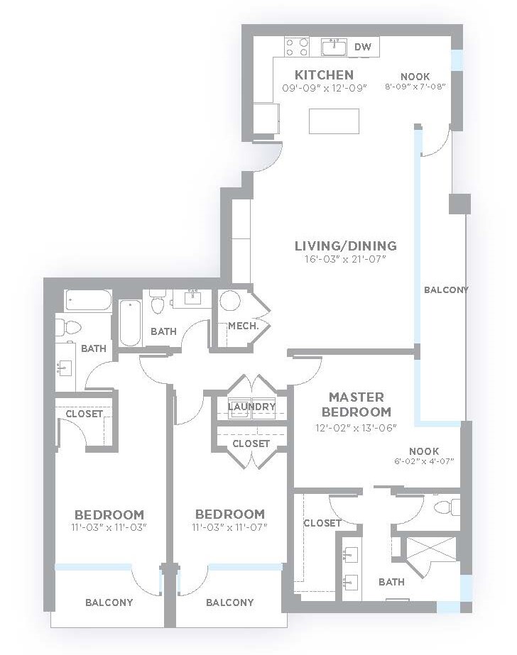 B2 - Floorplan 1 Apartment Unit: 310Apartment Model: B22 Bedroom, 2 Bath, 1342 sq ftAvailable NowFloorplan B1