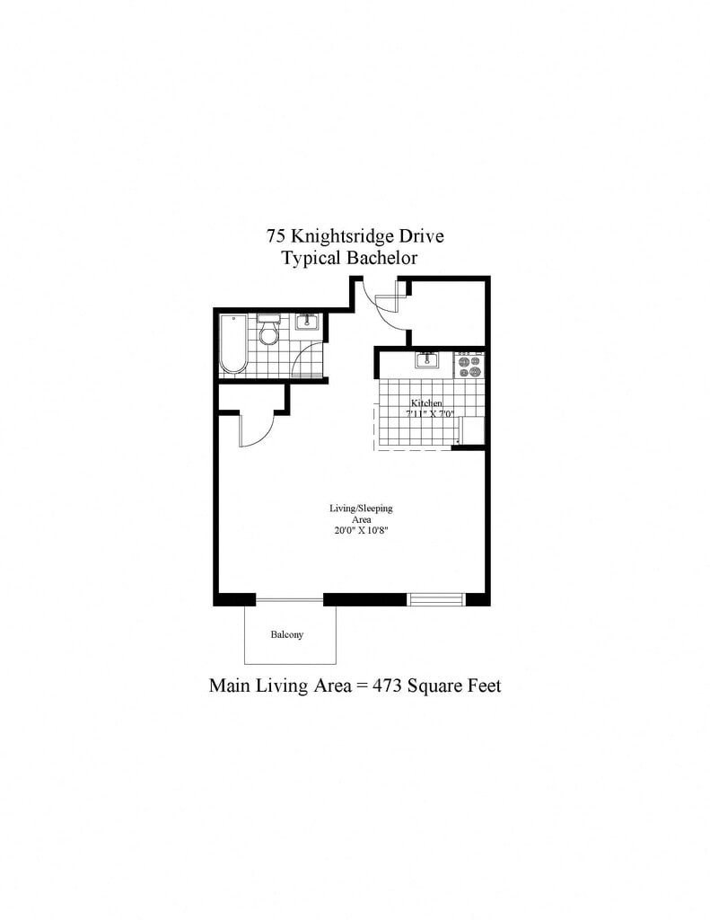 Apartment Model: BachelorStudio, 1 Bath, 477 sq ftUnavailableBachelor - Floorplan 1 1 Bedroom