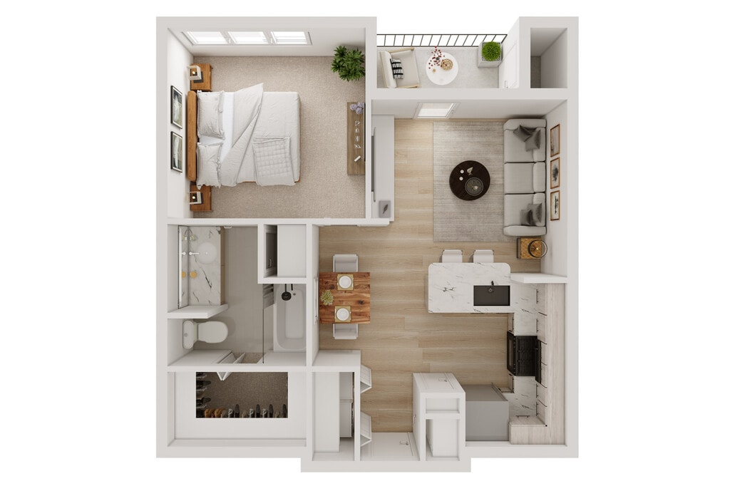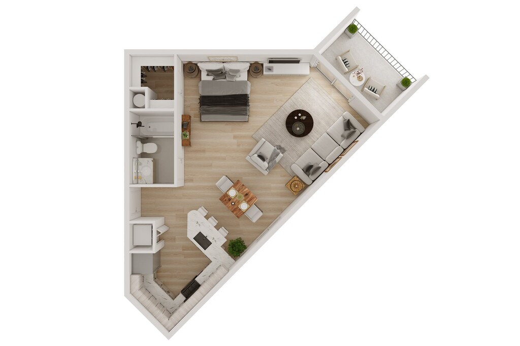 Studio - Floorplan 1 Apartment Unit: R-0434RApartment Model: StudioFrom $1,060Studio, 1 Bath, 595 sq ftAvailable December 13, 20251 Bedroom