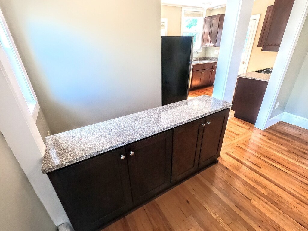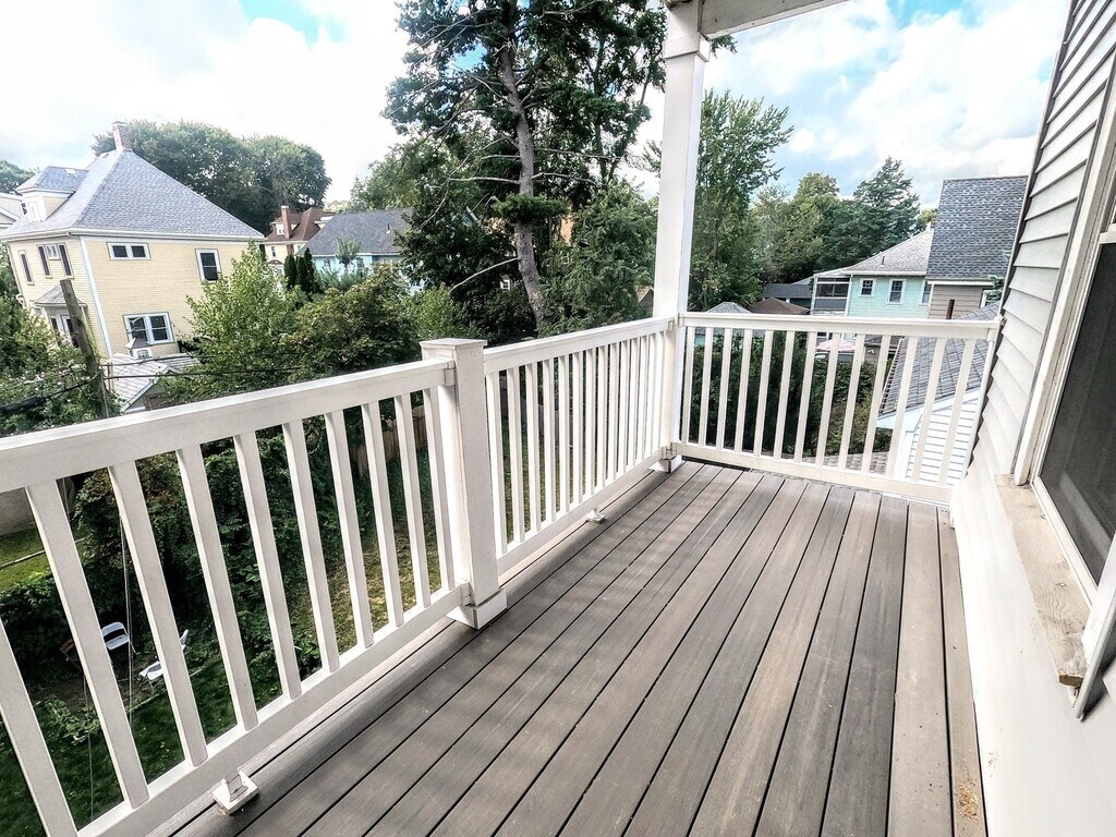 ROSLINDALE'S DOCTORS ROW NEIGHBORHOOD! Charming unit with gleaming hardwood floors, offering two private decks and a fenced-in yard, perfect for outdoor relaxation. Spacious bedrooms feature closet lights for added convenience. The eat-in kitchen boasts a breakfast bar, fully applianced (fridge, dishwasher, gas stove, built in microwave), granite counters, and upgraded cabinets. Enjoy direct access to the back deck (13'x6') from the kitchen, ideal for entertaining. Stay comfortable with gas heat and hot water. Coin-op laundry on-site. Located within walking distance to commuter rail and vibrant Roslindale Village, this home blends modern upgrades with urban convenience, making it a must-see!