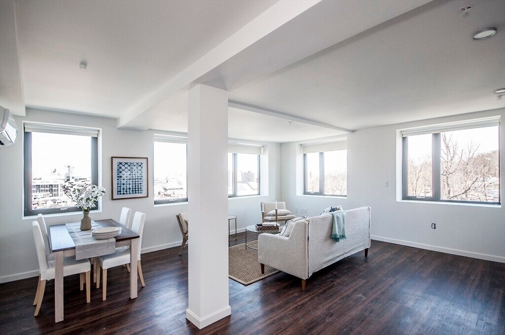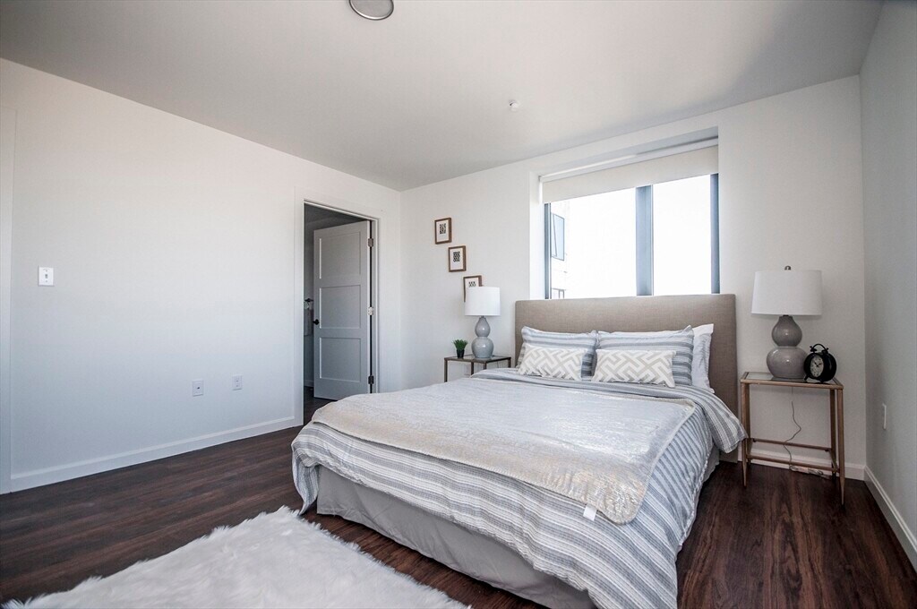 9/1 move-in. Stunning 2 Bed / 2 Bath at Sunset Lofts, lEnjoy breathtaking views of downtown Boston, Cambridge and Jamaica Plain. This residence features a designer kitchen complete with Caesarstone countertops and stainless steel appliances. Enjoy the comfort of central A/C and the convenience of en-suite laundry and hardwood flooring throughout. Pet-friendly building that offers residents an elevator, on-site fitness center, covered parking for rent, bike storage, and private resident storage.70