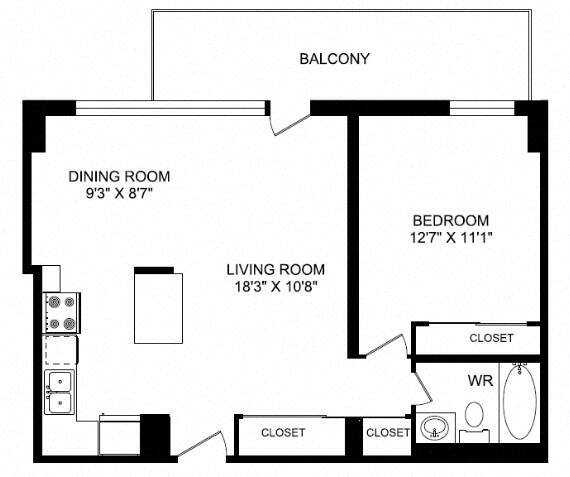 Jr 1F Renovation 2 - Floorplan 1 Apartment Unit: 1810Apartment Model: Jr 1F Renovation 2$2,1201 Bedroom, 1 Bath, 580 sq ftAvailable NowJr 1A Renovation 2