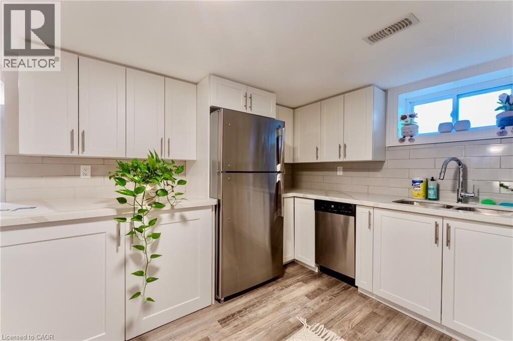 Beautifully renovated two-bedroom basement duplex apartment located on the Hamilton Mountain. This bright and well-maintained unit features an open-concept living area with modern white kitchen cabinetry,stone countertops,and stainless steel appliances. Both bedrooms are generously sized with ample closet space. The unit includes a clean,updated 4-piece bathroom and the convenience of private in-suite laundry (washer and dryer). Two (2) tandem driveway parking spaces are included. The apartment also benefits from a private entrance and dedicated outdoor space for the exclusive use of the tenant. Conveniently situated close to parks,shopping,restaurants,public transit,and major access routes. Tenant to pay hydro; other utilities negotiable. (id:52069) ID#: 2147676