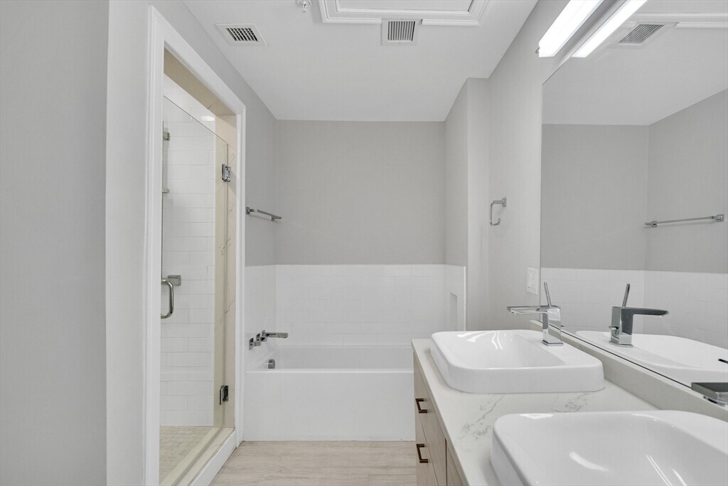 1-of-A-Kind Spacious condo in the former immaculate conception Church! This spacious(912 sq ft) 1 Bed 1.5 baths & Private terrace floorplan has bespoke designer finishes. The open-concept floorplans have hardwood floors, chefs kitchen with quartz countertops, in-unit laundry, stunning contemporary kitchens and baths that have tubs and walk-in-showers. Building amenities include a residents lounge, Fitness center, Full time concierge and tranquil courtyard. Steps to Boston medical center, Flour bakery, Toro, Blackstone Park and all the best the South End has to offer! All utilities included( water/sewer, hot water, gas & electric. You just pay Wi-Fi ! photos are of a similar unit in the building771-781