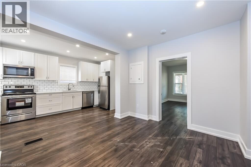 WOW! Stunning,MAIN FLOOR unit available November 1,2025 in a well kept heritage building. This renovated and modern unit features light filled generous living spaces,functional kitchen with quartz counters and stainless steel appliances (including dishwasher!) and private outdoor living space. Ideal location for young professionals or those who desire living within walking distance to the thriving Ottawa Street shopping centre. Enjoy being steps to local fresh markets,coffee shops,transit and some of the best restaurants Hamilton has to offer. This unit comes with free shared laundry on the main floor,private back porch and lots of storage. Tenant pays for their own hydro usage and a 25% of gas/water/HWT rental. Private parking included. Book your showing today! (id:52069) ID#: 1999102
