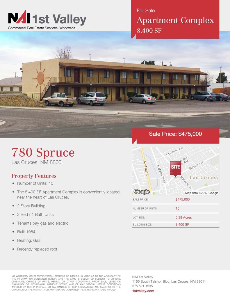 Thanks for your interest in 780 Spruce Ave in Las Cruces. The 88001 location has so much to offer its residents. Featuring studio to 0 bedroom apartment floorplan options. Stop by 780 Spruce Ave today.