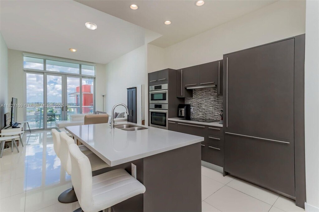 (COURTESY OF THE LAB REALTY GROUP LLC) Brand New Amenities! Experience the perfect blend of modern design and sophistication in this beautiful condo at Midtown Doral. This 1 bed / 1 Den / 2 bath unit boasts walk-in closets, 11" floor-to-ceiling, sound-reducing technology , impact-resistant sliding doors, and a gourmet kitchen with European cabinetry and quartz countertops. 1 assigned parking space. Conveniently located with immediate access to the Turnpike, Palmetto, regional malls, Publix, and A+ schools, this building features a relaxing lobby area and a 24-hour welcome desk with concierge service.