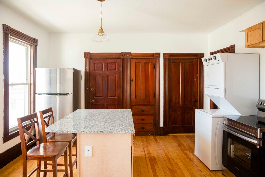 HEAT AND HOT WATER INCLUDED! ($125 avg savings) Welcome to this spacious 2-bedroom apartment on the second floor of a quiet, tree-lined street in Manchester’s desirable North End. Recently renovated, it features historic wood trim, 9-foot ceilings, and bright natural light throughout. The layout includes two bedrooms, a living room, a dining room, a full kitchen with granite countertops, stove, refrigerator, and island, plus a kitchenette with sink and dishwasher. The apartment also has an in-unit washer and dryer conveniently located in the kitchen. Mini splits provide efficient air conditioning for the summer months. Enjoy the private front porch and the large shared side yard for outdoor relaxation. The property offers both on-street and off-street parking, and the electrical system has been fully updated for safety and reliability. This location is ideal for easy commuting—just two minutes to Everett Turnpike and five minutes to I-93—and close to restaurants, shopping, and downtown Manchester. Rent includes heat and hot water, offering about $125 in monthly savings. No smoking. A credit check is required for each tenant over 18, and a security deposit is due at lease signing. Pets may be approved with a $100 monthly pet fee. Don’t miss the chance to make this beautiful North End apartment your new home. Request a questionnaire today!
