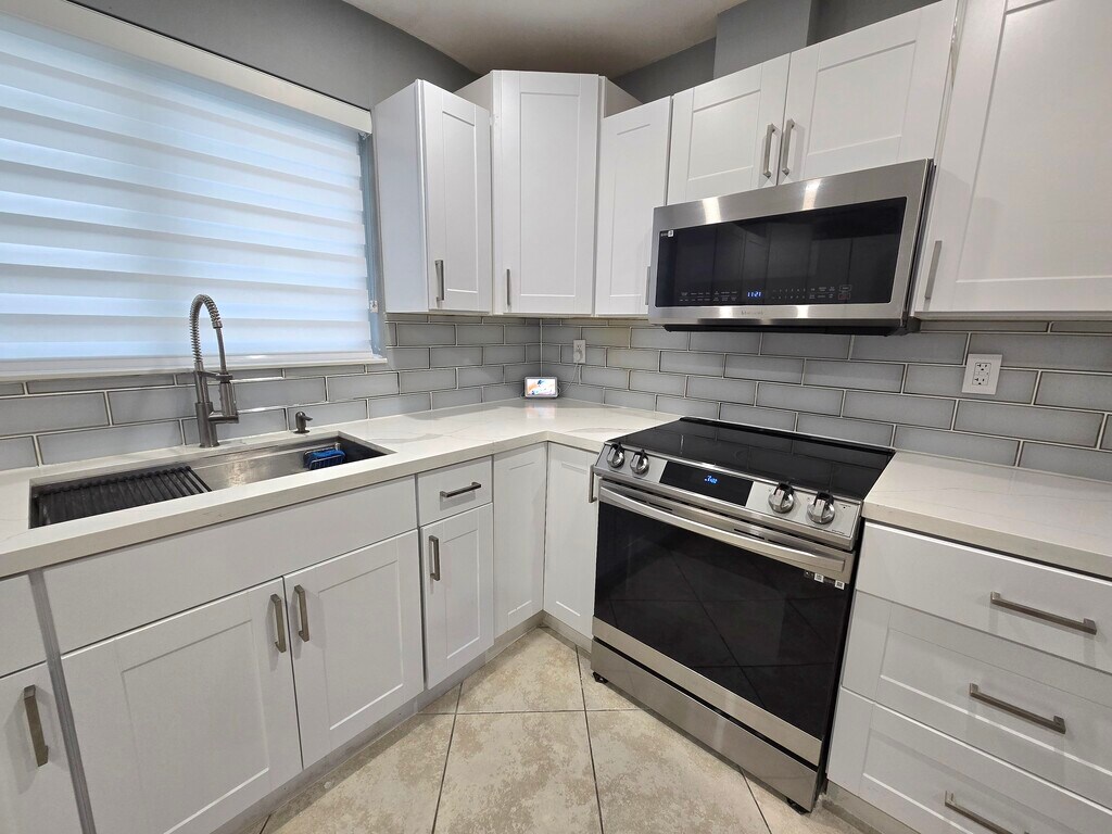 Beautifully updated home in a peaceful neighborhood! This charming house features 2 bedrooms, 2 bathrooms, and a versatile den. The primary suite includes a private bathroom for added convenience. Enjoy a spacious, open backyard—perfect for relaxing or entertaining. Inside, you’ll find a newly remodeled kitchen with plenty of space, along with two fully renovated bathrooms. Luxurious ceramic glass table is included with 6 chairs. The home also boasts modern recessed lighting throughout for a bright, welcoming feel. A washer and dryer are included, making move-in even easier.
