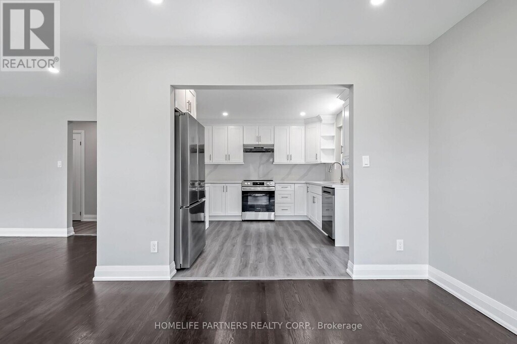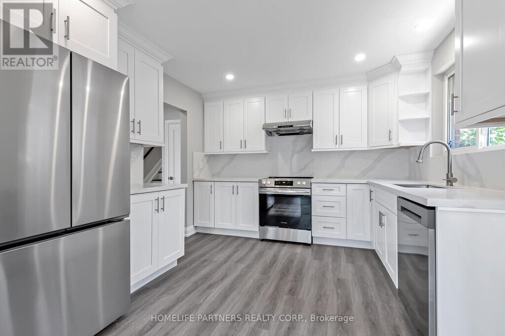 Must see!!! Beautiful 3 bedroom property boasts a gorgeous chef's kitchen with quartz counter top and backsplash,high end stainless steel appliances and luxury vinyl flooring. The bathroom features a luxurious large glass shower enclosure with rain shower head,porcelain tiles,double vanity and linen shelf. All Hardwood floors have been refinished. Living room and dining room windows have been replaced. Private laundry. 1 year old furnace and air conditioner. 2 car parking and shared use of large backyard. Conveniently located close to York University,Seneca College,Humber College,Shopping,Hospital,Vaughan Mills,Hwy 427/401/407,transit and future Finch LRT,Rowntree Mills Park. John D. Parker Jr School,Smithfield Middle School,North Albion Collegiate Institute and St. Andrew's R.C. School. (id:52069) ID#: 1971889