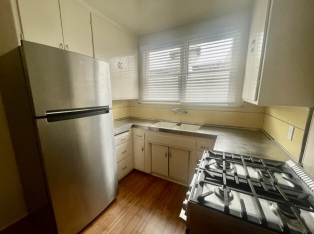 From your private entrance, step into a first floor spacious, bright apartment that features a large eat-in kitchen, hallway to dressing area and bathroom, hardwood floors, A/C, crown moldings, many closets for clothes and storage, stainless steel countertops and appliances located on lush treelined street in the heart of West Hollywood. Walk to Whole Foods and many eateries. Quaint 1940's 10 unit apartment building. Grassy front yards (one is outside this unit!) Mom and Pop owned since 1995. Well cared for. Laundry on site. Permit parking. Hurry on this one or its gone. Check out the photos! Ready to move in today. Unit 7- West Hollywood charmer with parking. From your private entrance, step into a first floor spacious, bright apartment that features a large eat-in kitchen, hallway to dressing area and bathroom, hardwood floors, A/C, crown moldings, many closets for clothes and storage, stainless steel countertops and appliances located on lush treelined street in the heart of West Hollywood. Walk to Whole Foods and many eateries. Quaint 1940's 10 unit apartment building. Grassy front yards (one is outside this unit!) Mom and Pop owned since 1995. Well cared for. Laundry on site. Hurry on this one or its gone. Ready to move in November 1. Possibly sooner.
