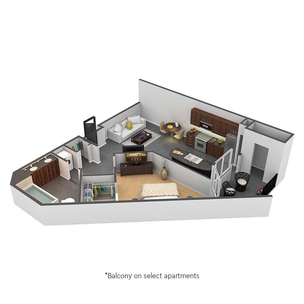 Studio, 1 Bath, 604 sq ftAvailable NowModel Gallery