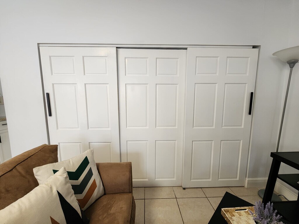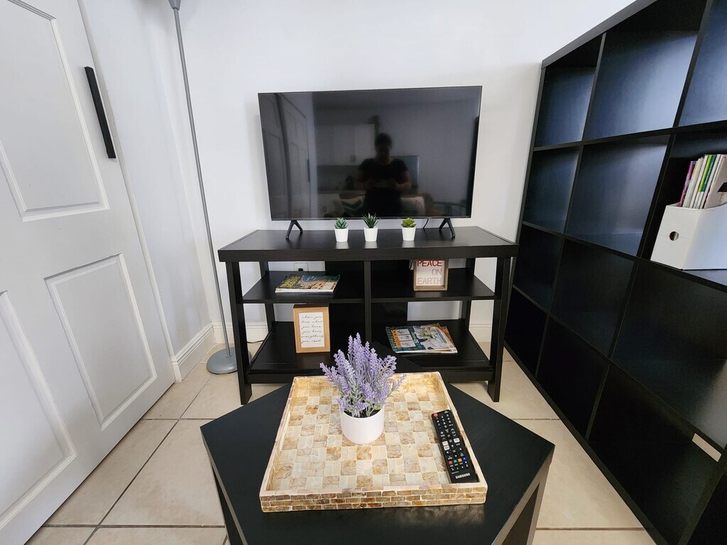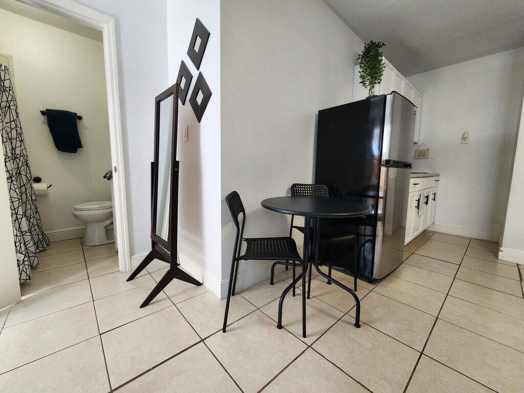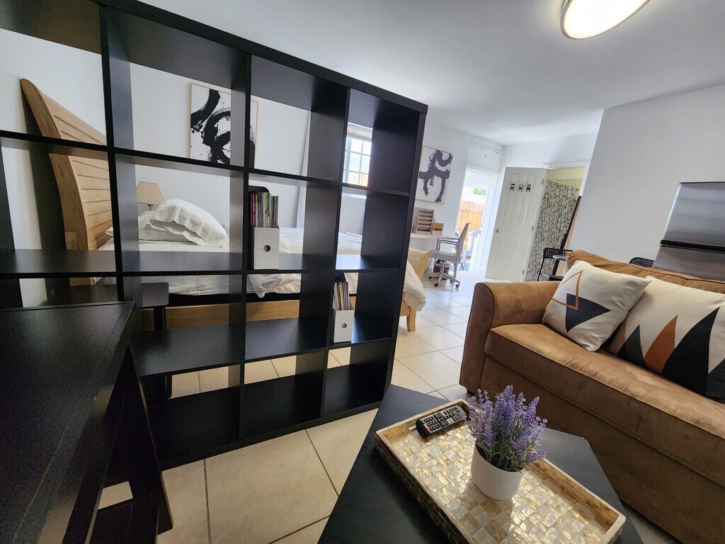 Spacious Studio for rent in the area of Cutler Bay, completely furnished Private Entrance with small courtyard with 2 chairs , table to relax and a portable small charcoal grill Private bathroom Parking on driveway next to entrance Kitchenette with full refrigerator and freezer, microwave, air fryer, toaster oven and electric pan Queen Bed with comfortable mattress, nightstands, bookshelf and a cozy living room that features a twin sleeper sofa and smart TV, Small dining table with 2 chairs and big office desk and chair Lots of storage with a 3 door closet!! Utilities included and WiFi It can be month to month, 6 months or yearly contract.