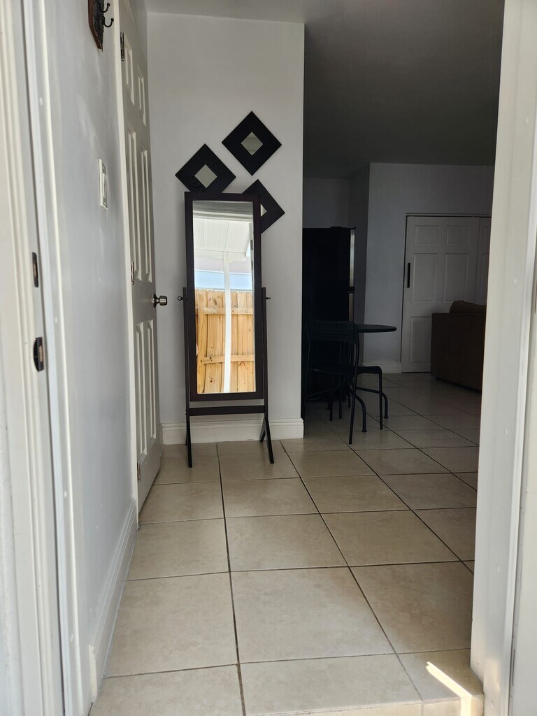 Spacious Studio for rent in the area of Cutler Bay Private Entrance with small courtyard with 2 chairs , table to relax and a portable small charcoal grill Private bathroom Parking on driveway next to entrance Kitchenette with refrigerator, microwave, air fryer, toaster oven and electric pan Quien Bed with comfortable mattress, nightstands, bookshelf and a cozy living room. Small dining table with 2 chairs and big office desk and chair Lots of storage with a 3 door closet!! Utilities included It can be month to month, 6 months or yearly contract.