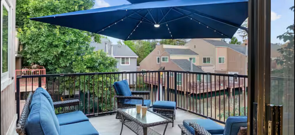 SKIP APPLICATION PROCESS... BOOK DIRECT WITH AIRBNB ... 2 WATER~FRONTS TO CHOOSE FROM: CoffeeWithDucks ( dot com ) OR FurnishedWaterFront ( dot com ) | TEXT 5 STAR HOST: 4I5.885.9O9O Gated community townhouse located on second floor in very quiet and private environment. Enjoy your time chilling in your own private balcony overlooking water fountains, ducks, birds, turtle in the water and much more. Never a dull moment, enjoy reading books, play games located inside lift up coffee table. Enjoy listening to JAZZ, blues and other music. Enjoy every meal overlooking water from dining table. WOW 2 (75") smart TV for you to enjoy, one in living room and one in master bedroom The space Place really comes "ALIVE" in night in the balcony, C0LORED SOLAR LIGHTS automatically ( Turn on umbrella light with red switch and get ready to get ( Wowed ) 2 queen luxury and comfortable beds. Gated private and quiet community. Home is located on second floor with private balcony overlooking water and fountains, ducks, turtle, birds surrounded by NATURE. Comes with one detached private parking.