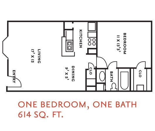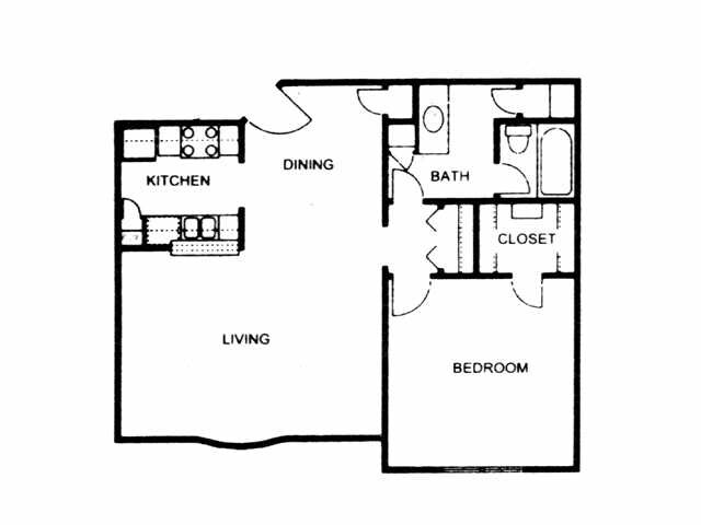 Apartment Model: A1-ENCLOSED KITCHENFrom $7491 Bedroom, 1 Bath, 614 sq ftAvailable Now![]()