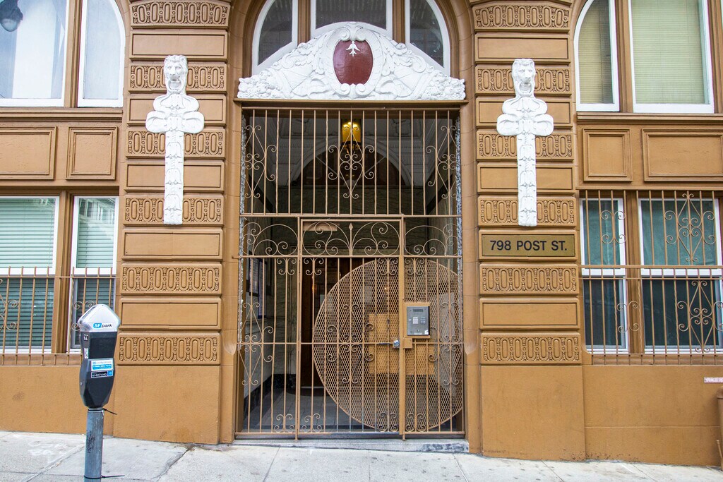 798 Post is seven stories of Lower Nob Hill elegance, impeccably situated for enjoying the neighborhood and all of San Francisco. Built in 1913 and full of unique design elements, this beautiful building is perfect for commuters or anyone looking to explore the best of the City.A true standout on the corner of Post and Leavenworth, 798 Post is home to a distinctive façade that melds brick with other ornamental touches - a popular spot to film commercials and TV, it also makes a cameo in Sean Penn's film Milk. Behind a wrought iron gate is a stunning lobby with a softly arched ceiling, rich stonework, and a curved marble staircase. Historic charm is complemented by modern amenities, with residents enjoying on-site laundry, elevator access, and more.This Walker and Rider's Paradise means excellent accessibility to premier bars, restaurants, shopping, and entertainment. Options include across-the-street neighbor and cocktail haven The Royale, which hosts jazz on weekends, and fine dining favorite Liholiho Yacht Club around the corner. Union Square, Downtown, and the Financial District are accessible on foot from 798 Post, with convenient proximity to BART and Muni stops and Van Ness tech shuttle pick-ups for commuters. Dog-walkers and activity seekers can find green and recreational space at nearby Huntington Park, Boeddeker Park, and O'Farrell-Larkin Mini Park. This unit is a rental unit subject to the San Francisco Rent Ordinance, which limits evictions without just cause, and which states that any waiver by a tenant of their rights under the Rent Ordinance is void as contrary to public policy.