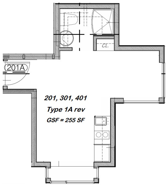 Studio - 256 sqft - Floorplan 1 Apartment Unit: Unit 405Apartment Model: Studio - 256 sqft$1,250Studio, 1 Bath, 256 sq ftAvailable NowStudio - 237 sqft