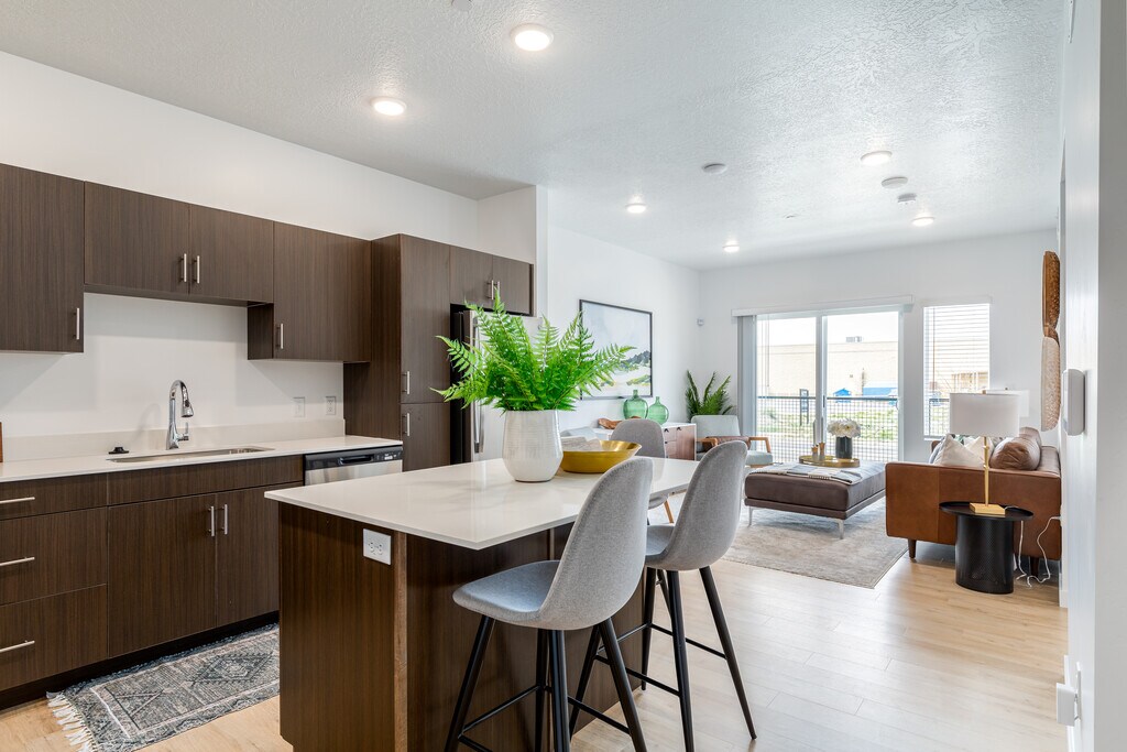 Lease with 7th West Midtown and find that home is always close by. Whether heading out for your daily commute or bouncing from shop to shop around the streets of Layton, you'll never be more than a few minutes from your sleek place at the city's newest apartment community. Call or book a tour to learn more about our top-end amenities, lavish finishes, and impressive variety of high-class amenity spaces.