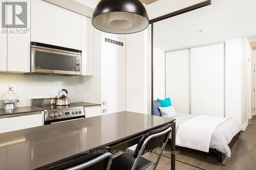Loft-style 1 Bedroom,1 Bath in the award-winning Art Condos,recognized as one of Toronto's most innovative boutique buildings. This stylish suite features sleek,neutral decor,soaring 9 ft exposed concrete ceilings,hardwood floors,and a modern kitchen with a centre island,perfect for dining or working. The bedroom includes a double closet for ample storage. Enjoy premium amenities including: concierge,gym,party room,lounge,and a stunning rooftop terrace with BBQs. All in the heart of Queen West,steps to the streetcar,trendy shops,and some of the city's best restaurants and bars. Urban living at its finest! (id:52069) ID#: 2214203