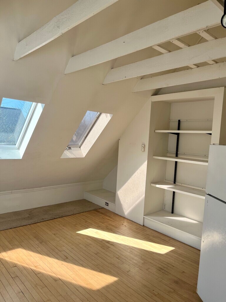 Have the experience of a lifetime Somerville's Spring Hill has to offer. Offering phenomenal location adjacent to Washington St directing you over to Harvard Square and Lesley University. Meanwhile having the amenities of Neighboring your local supermarket (Star Market), local diners/restaurants, Cafe's, and an abundance of retail and shoppes along the way fulfilling both leisure and professional commodity. Union Square Green T-line within a 20 minute radius - Harvard Square Red T-Line within a 20 minute radius. This stunning top-floor sun-drenched one-of-a-kind studio (2 rooms) condo has everything to offer. Featuring a chic private deck area for hosting family and friends, storage space, and track lighting within kitchen area and a ceiling fan in the second room. Additional features include in-building laundry facilities, off-street parking, and gas utilized as your heating source. This is a pet friendly building. Pet Fees are negotiable.