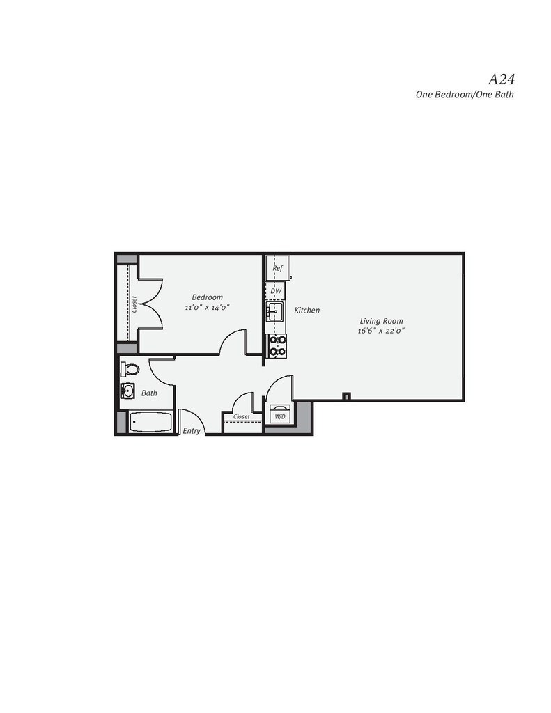 1 Bed, 1 Bath, 590 sq ftAvailable NowModel Gallery