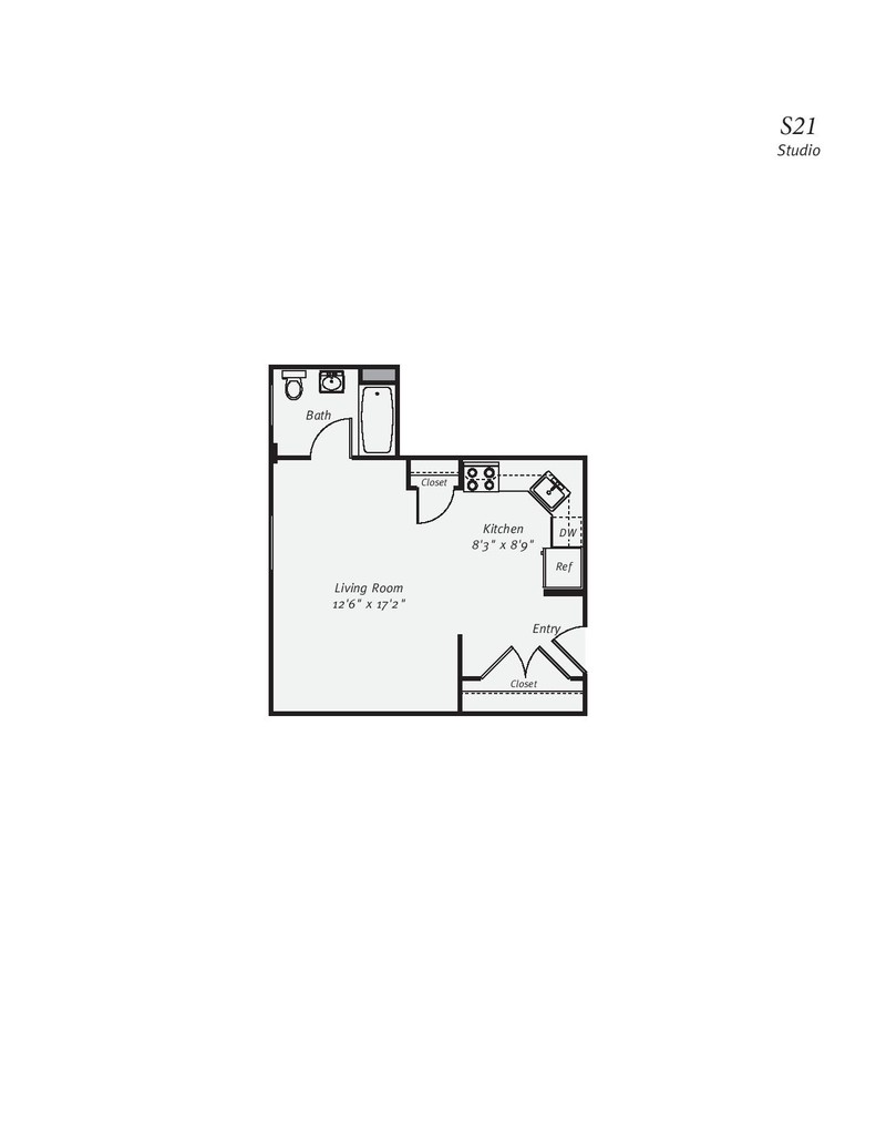 Apartment Model: S21From $1,200Studio, 1 Bath, 395 sq ftAvailable NowFloorplansPhotos![]()