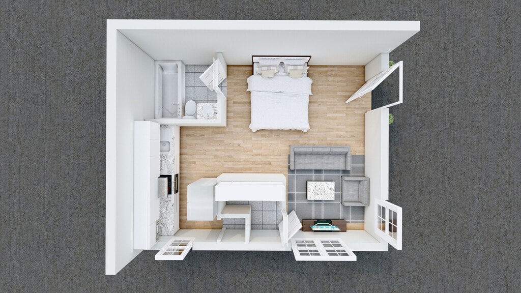 Studio, 1 Bath, 260-350 sq ftAvailable NowModel Gallery