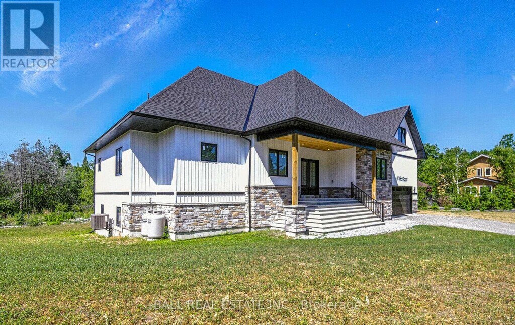 Welcome to 80 Birch Crescent,Bobcaygeon - a stunning,brand new custom-built home offering over 4,500 sq ft of thoughtfully designed living space just minutes from charming downtown Bobcaygeon. This 4-bedroom,4-bath masterpiece blends modern elegance with every day functionality,featuring soaring ~11 ft ceilings on the main level,engineered hardwood flooring,and upgraded finishes throughout. Only a short walk from public access to Pigeon Lake. Step into the heart of the home - a show-stopping kitchen equipped with high-end KitchenAid appliances,under-cabinet lighting,a large quartz island and sleek modern cabinetry. Enjoy seamless flow into the open concept living and dining area,illuminated by well thought out lighting. A large spa-like primary bedroom on the main floor with exquisite ensuite bathroom and walk in closet is included on the main floor as well as an extremely bright sunroom ideal for a home office,dining space,or den. The space extends to a covered walk out deck with builtin pot lights - perfect for an outdoor kitchen and entertaining year round. Solid-core 8-foot modern interior doors,7" baseboards and premium two-pane windows highlight the quality craftsmanship throughout. Practical features include a phenomenal well flow rate,advanced water filtration system,over-sized septic. Whether you're relaxing with family or entertaining guests,every inch of this home is designed to impress. Don't miss your opportunity to live in one of Bobcaygeon's finest new builds - luxury,location and lifestyle await at 80 Birch Crescent. (id:52069) ID#: 2203916