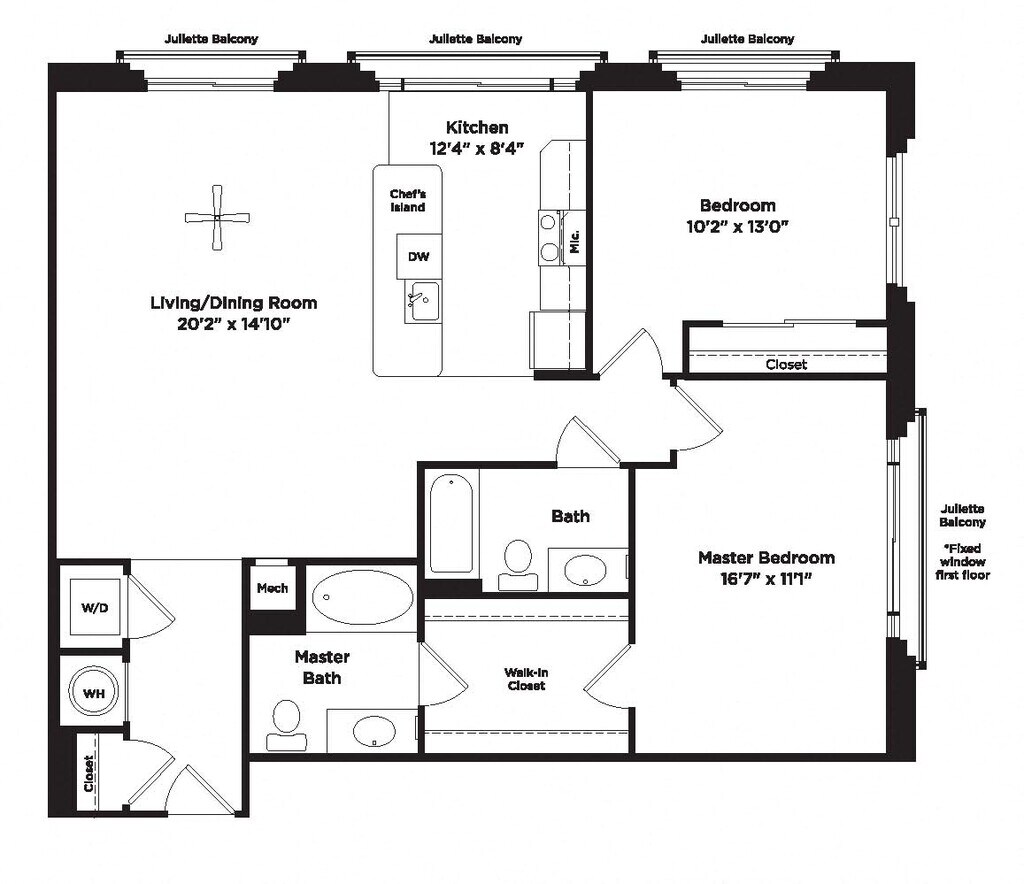 1 Bed, 1 Bath, 679 sq ftPlus FeesAvailable NowModel Gallery