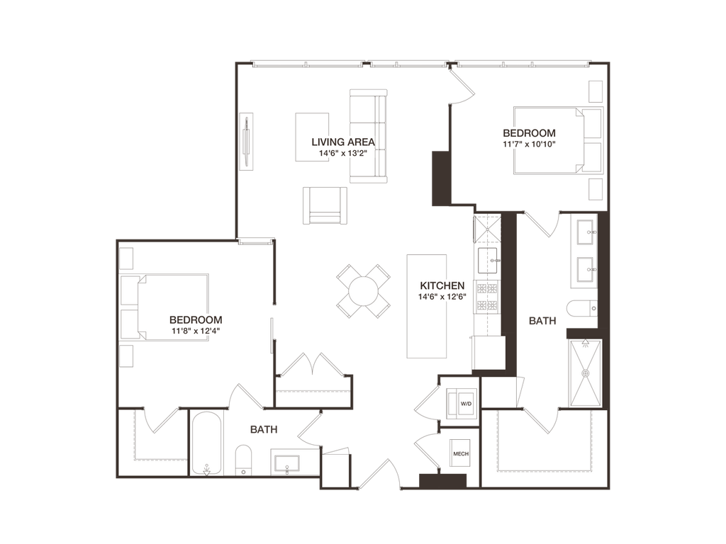 2 Beds, 2 Baths, 1212 sq ftAvailable NowModel Gallery