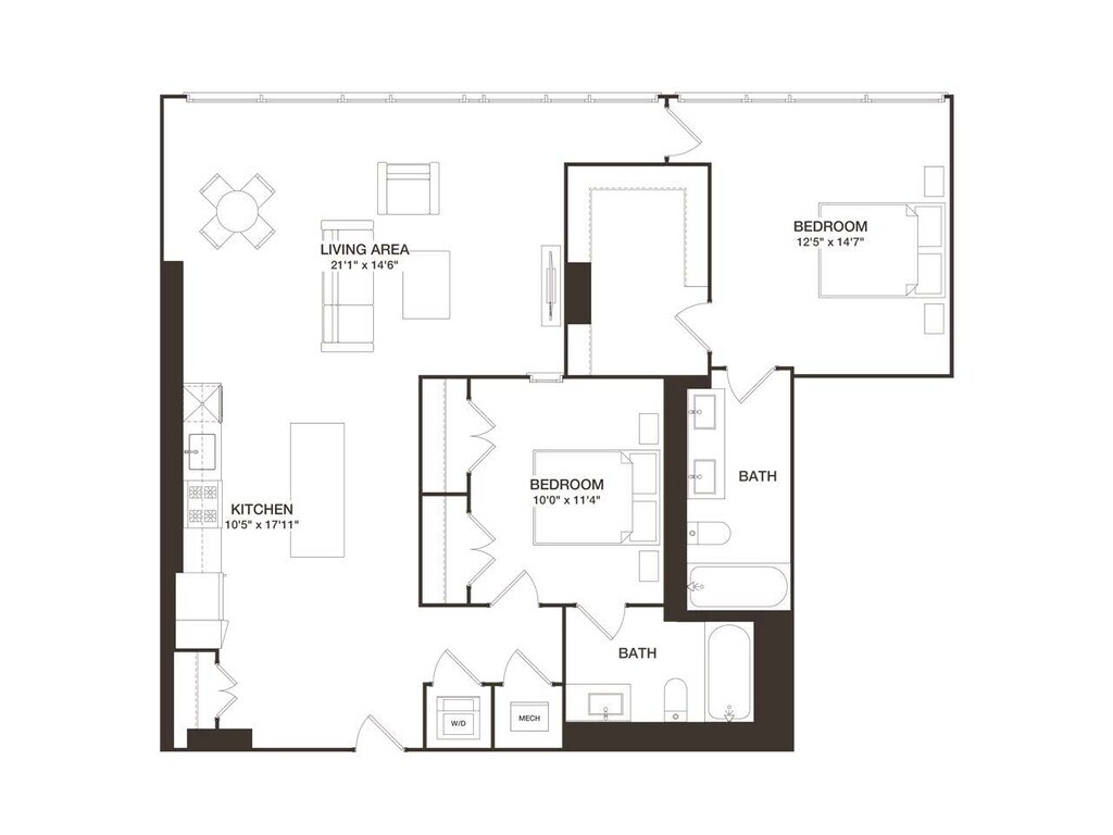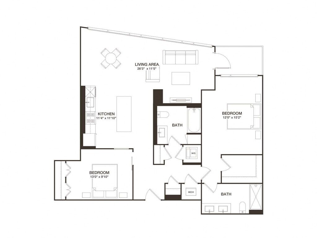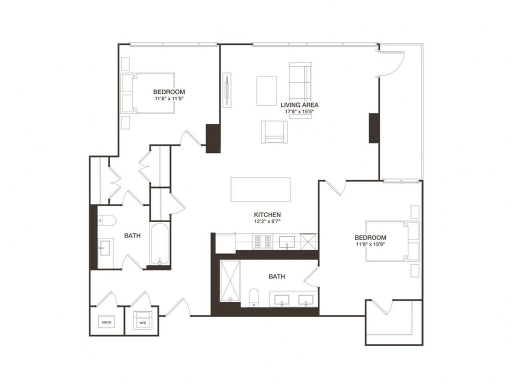 Apartment Model: 1 Bed - 1 Bath | A04From $3,0221 Bedroom, 1 Bath, 909 sq ftAvailable Now![]()