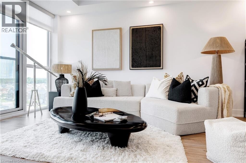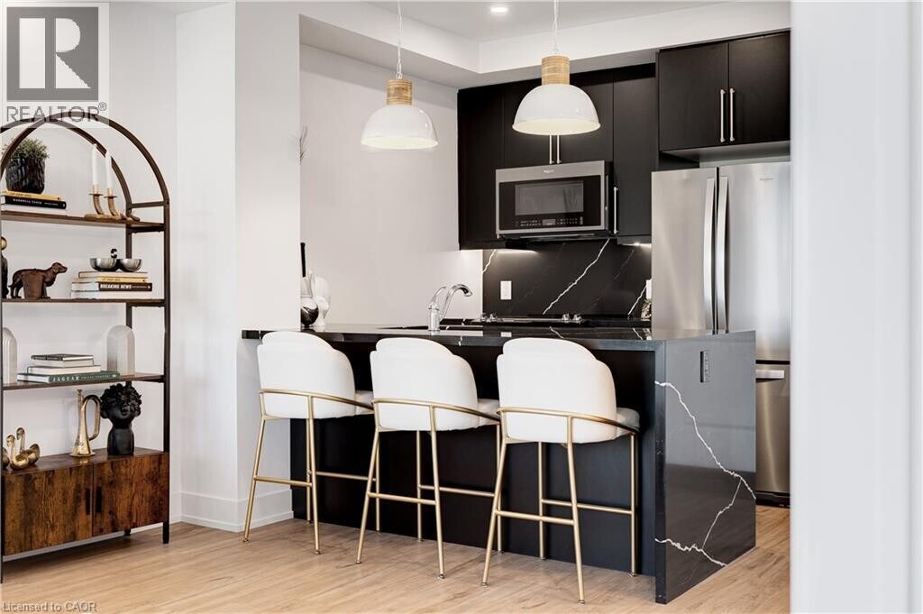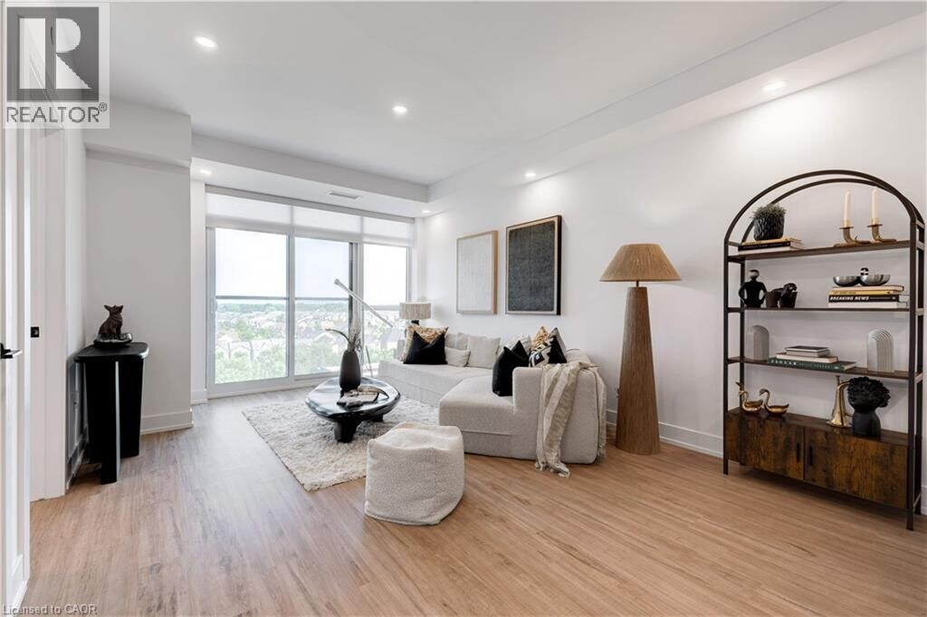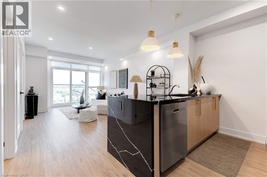 Welcome to Trend 3 Condos in the heart of Waterdown! This stunning 587 sq ft,1-bedroom designer suite is perched on the 8th floor and is loaded with over $60,000 in premium upgrades. A true designer dream,this condo blends modern luxury with thoughtful details throughout. The open-concept layout showcases a fully upgraded kitchen,stainless steel appliances,pot lights throughout,and stylish flooring with no carpet. The spa-inspired bathroom features a sleek walk-in shower,creating a hotel-level experience at home. The generous bedroom offers comfort and privacy,while the rare Juliette balcony allows fresh air and an effortless inside-out breeze,filling the space with natural light and an airy feel. Convenience meets luxury with in-suite laundry,one parking space,and a private locker. Residents of Trend Condos enjoy exceptional amenities including a rooftop terrace with panoramic views,fitness centre,party room,bike storage,and visitor parking. Located minutes from major highways and just a 10-minute drive to Aldershot GO,this prime location also places you steps from scenic trails,parks,restaurants,and everything Waterdown has to offer. (id:52069) ID#: 2170504