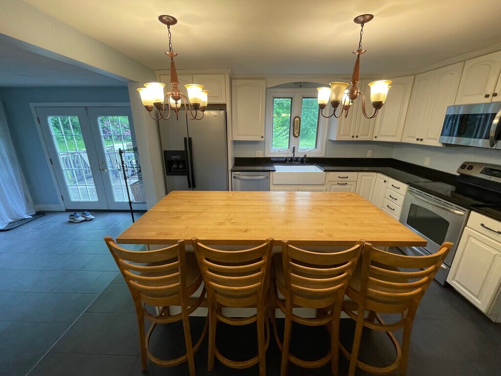 Very Clean House Available for rent starting in June. Newly remodeled within the past 5 years. Located less than 3 miles from UConn. Driveway fits up to 6 cars. 1st floor includes fully loaded kitchen upgraded with granite counter tops, farmers sink, stainless steel appliances and butcher block island. Walkout double doors to back porch that over looks private 2+ acres. Tile and hardwood floors through out. Full bathroom, 1 bedroom, dining room, living room & bonus office/storage room also located on first floor. Walk upstairs to find another 4 bedrooms all with closets and another full bathroom. Unfinished basement provides additional storage and includes washer & dryer. Sewer, water, snowplowing and landscaping all included in rent.