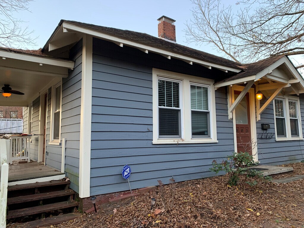 Location is this houses strongest feature. Historic home in downtown Raleigh on 0.06 acres with parking. Located between NC State University and the downtown warehouse district. This location is perfect for students or professionals working downtown. Two bedrooms, 1.5 bath, kitchen, den, dining room, and covered porch. Kitchen has electric range, dishwasher, and fridge. Property has a fenced dog run and room for gardening or other outdoor enjoyment.